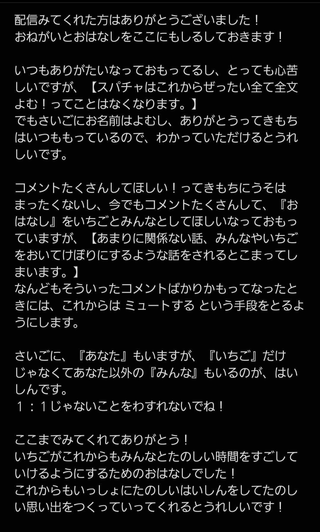 今日はありがとうございました!ちょっとよみづらいかもしれないけどおねがいとおはなし、文字にしました!!!あしたからもはいしんがんばるので!これからもよろしくおねがいします!