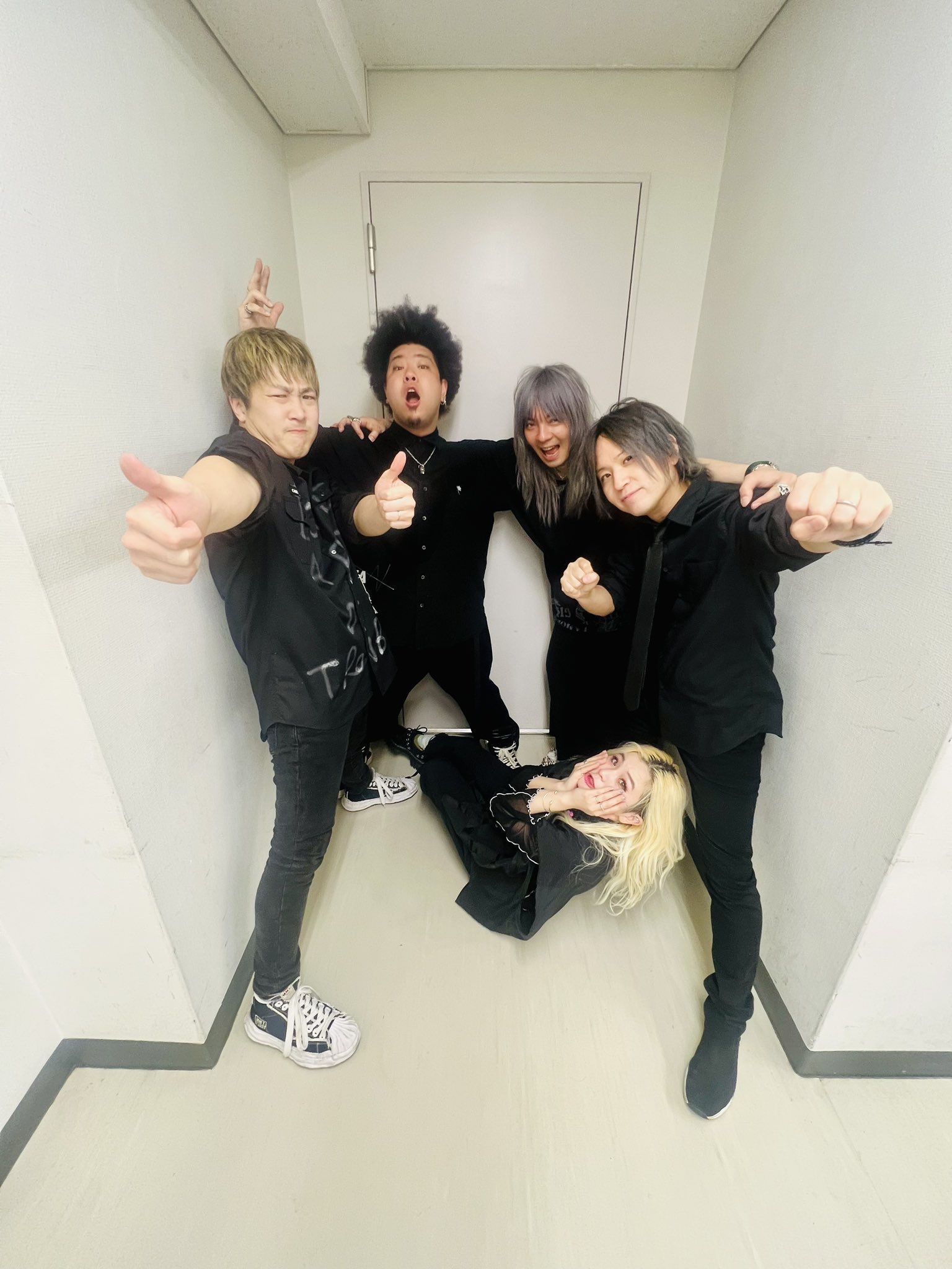 2日間92曲を演奏した5人の楽器担当の集合写真