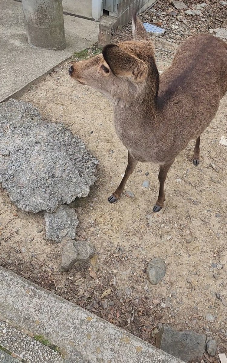 もしこの鹿を見かけたら、私に報告してほしい。私のぱぺの写真を撮ろうとして、せんべいを食べさせていたら、私のぱぺをくわえて逃げていった😭😭
