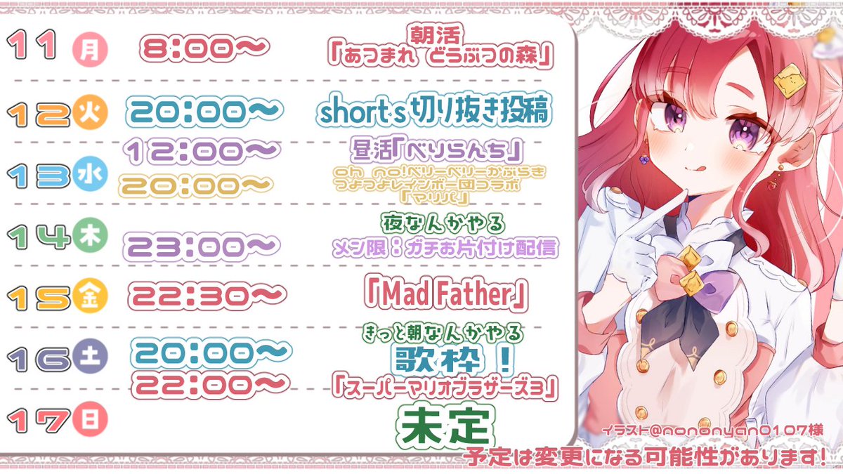 べりたその予定表出ました早乙女ベリー🍰🧁にじさんじ @Saotome_Berry (2024/11/14 00:40:25)